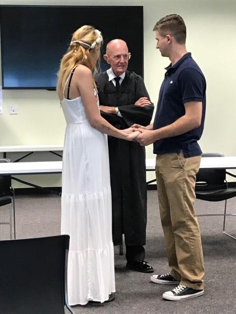 Creek nervously officiated his first wedding.